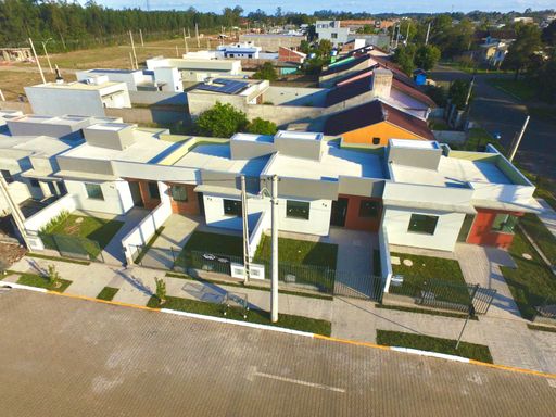 Cada casa possui, dois quartos, sala, cozinha, banheiro social, lavanderia, vaga de garagem e pátio fechada frente e fundos.