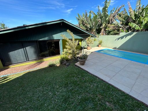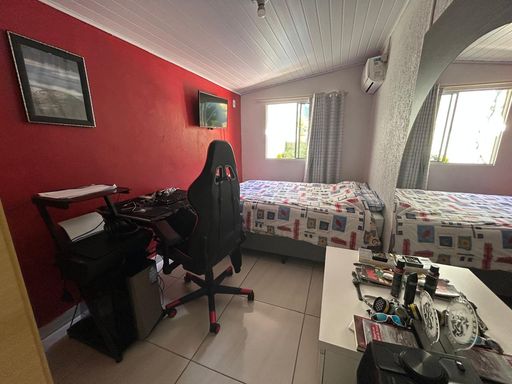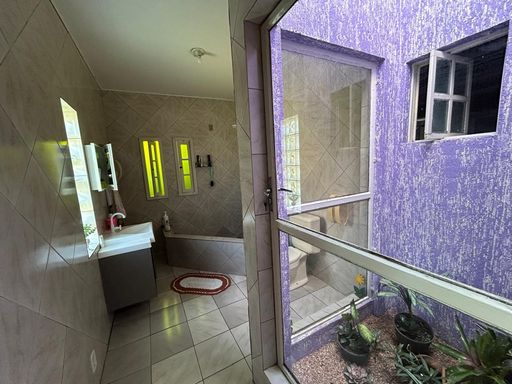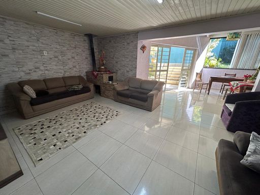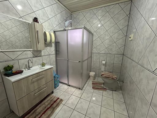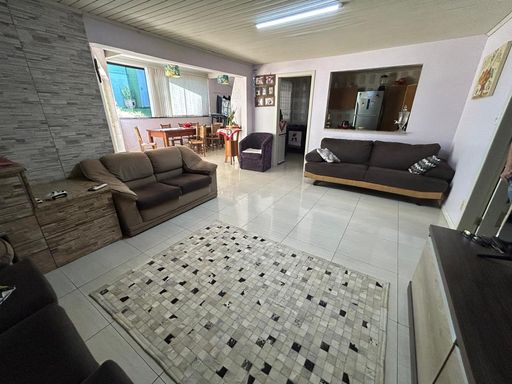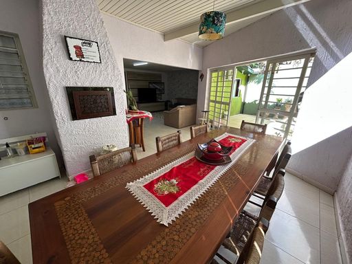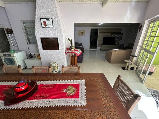 Com 165,00m² de área construída possui 4 quartos sendo dois deles suíte, duas salas de estar/tv, sala de jantar, banheiro social, cozinha, lavanderia, área social com churrasqueira e garagem fechada para um carro.