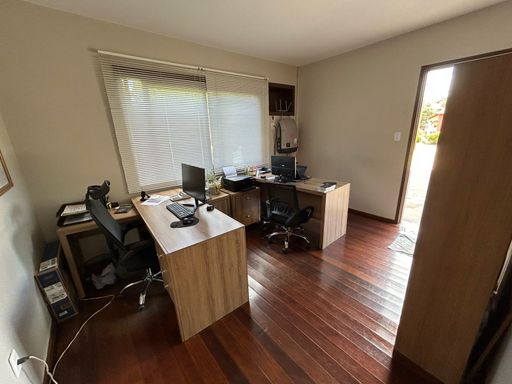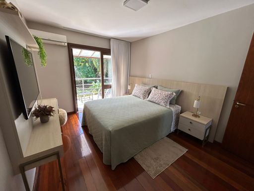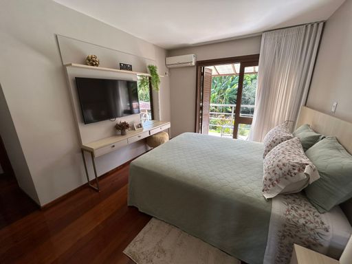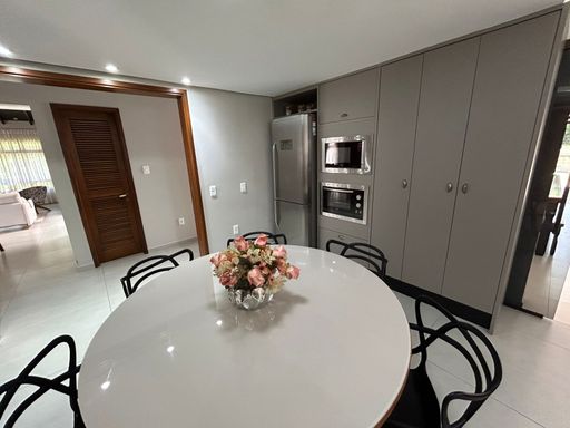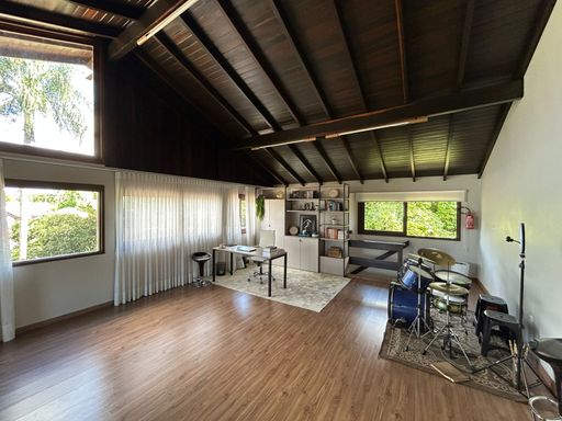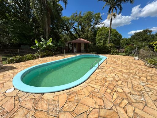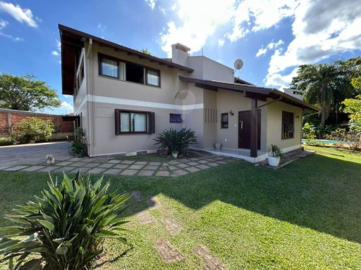 Fica localizada em rua tranquila, sem saída e possui diversos diferenciais. Um deles é o amplo espaço oferecido de pátio todo cercado e murado, com piscina, arborização e gramado. Móveis planejados permanecem na casa. Ótimo padrão de construção. Possui ainda um chalé de madeira, podendo ser destinado a moradia de empregados ou caseiro.