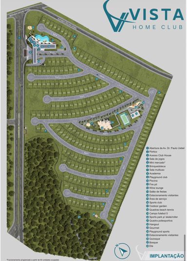 Com um total de 248 lotes e infraestrutura completa oferecerá qualidade de vida, segurança e comodidade aos seus moradores. Com design e arquitetura contemporânea contará com piscina com 450,00m² com vista para o vale, dois salões de festas de 40 e 80 lugares, podendo realizar um evento único para 120 pessoas, academia equipada com 93,00m² e sala anexa multiuso de 38,00m², brinquedoteca, sala de jogos, espaço gourmet para 40 pessoas, hangout, sportspark, 3 quadras de beach sports com deck e espaço de convivência, quiosque junto ao bosque.